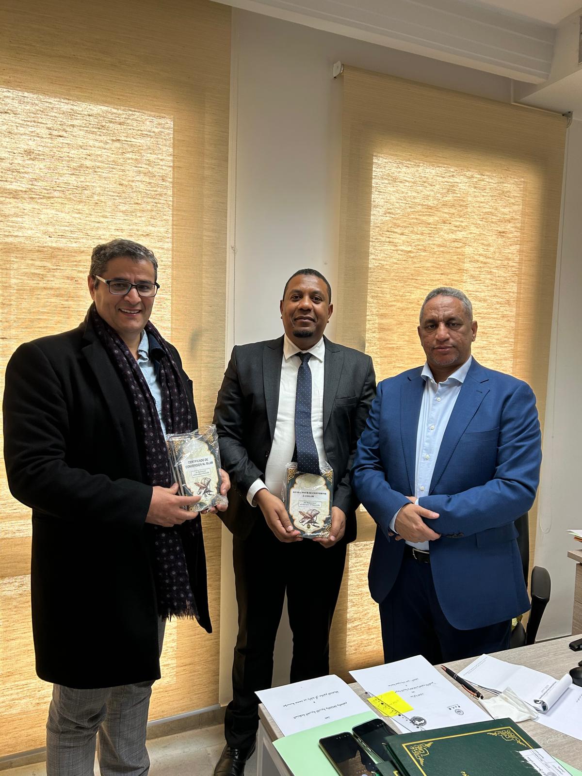 حضر اللقاء الاستاذ الحاج محمد الامين..امين مؤسسة رسالة السلام فى أسبانيا والدكتور شكرى الميمونى ممثل مؤسسة رسالة السلام فى فرنسا